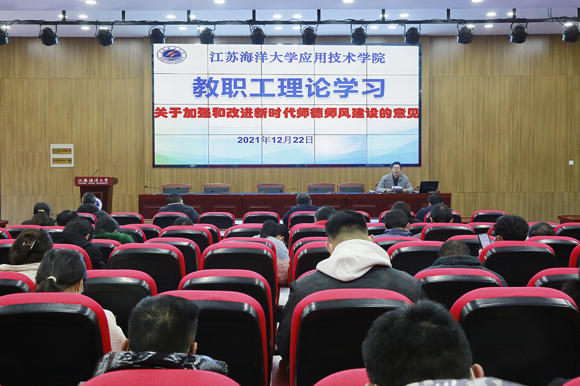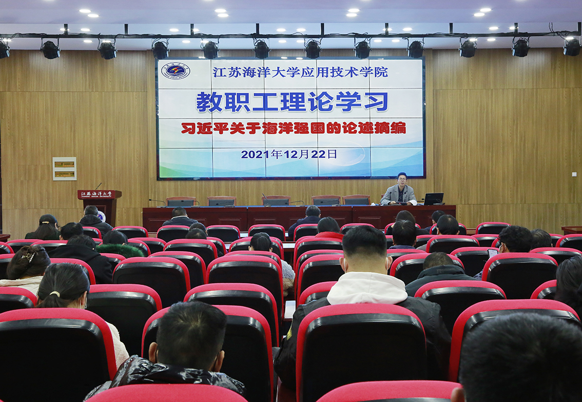 为提升海洋意识,促进师德师风建设,12月22日下午,学院在敦行楼报告厅召开教职工理论学习会,学习习近平总书记关于建设海洋强国的重要论述和教育部等七部门印发的《关于加强和改进新时代师德师风建设的意见》。院党委书记赵求勇主持会议。全体院领导、全院教职工参加会议。