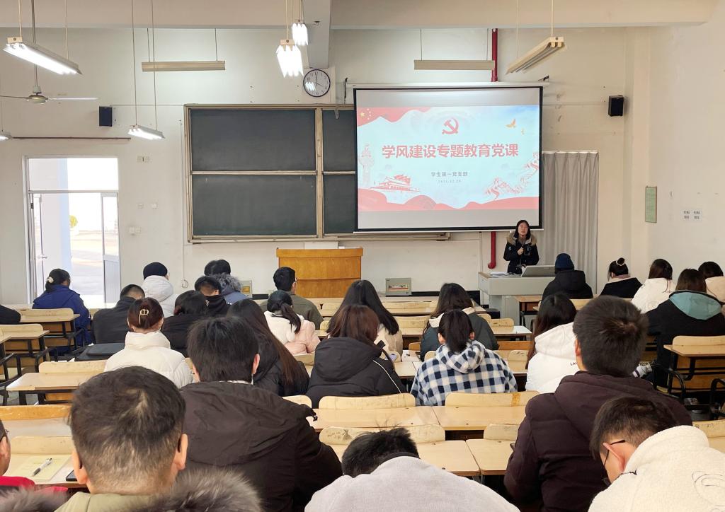 12月29日,学生第一党支部开展专题党课教育活动,党支部书记陶亚楠以“学风建设”为主题为支部全体党员上了一次深刻的专题党课。