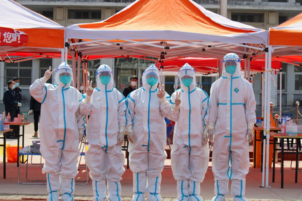 一天的检测采样工作圆满完成后,志愿者们陆续脱下红马甲,默默整理好放回箱子里。检测棚下,小小一方桌椅,他们在工作时是那么的沉着冷静,脱下防护服,又变得欢脱活泼了。“看你穿着防护服连续工作了好几个小时,应该很累吧,为什么脱下防护服还是一副很有精神的样子?”别人问她。“就是觉得自己做的工作很有意义,所以非常开心,这样也就感觉不到累了。”她嬉笑着回答。她的脸上,N95口罩深深的压痕清晰可见。