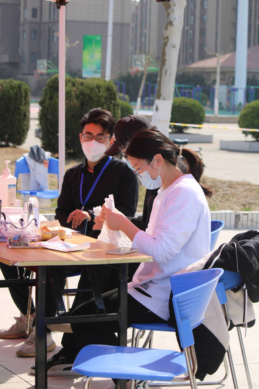 闻风而动脚步匆匆,疫情就是无声的命令。“3月6日第一次核酸检测采样工作,虽然等待时间较长,但采样现场没有看到一丝抱怨和争吵,大家都自觉服从志愿者安排,有秩序、守纪律,我觉得我们的同学都是最可爱的。”王鑫彤老师略带腼腆的说到,笑意的眼睛里透露出满满的自豪和满足。“你敢相信吗,每天晚上的志愿者群里报名接龙,比抢红包还激烈咧!核酸检测采样后的一声声谢谢,买了矿泉水送到采样篷下又悄悄离开的同学,白天做志愿者晚上巡逻校园的退伍大学生,食堂门口为大家消毒的学生党员……好多暖心的人和事,说也说不完。”