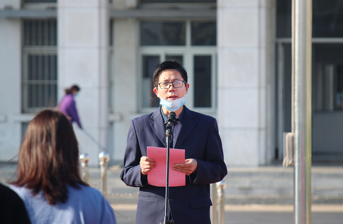 团员青年周鹏宇作为代表发言。他以青年团员的身份告诫同学们,作为新时代的青年,要秉承五四精神,把“爱国”作为第一要义,要把“好学”作为成长途径、要把“践行”作为成长阶梯,将个人目标与国家发展、民族复兴、人民幸福联系起来,做立大志、明大德、成大才、担大任,有能力、有担当、有作为的新时代青年。