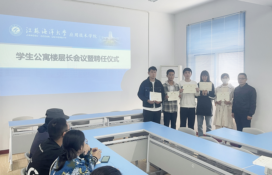 会议伊始,唐瑞锴宣读了2022-2023学年应用技术学院学生公寓楼层长名单并介绍了楼层长的选拔聘用标准及过程。时树奎为学生公寓楼层长颁发了聘书。