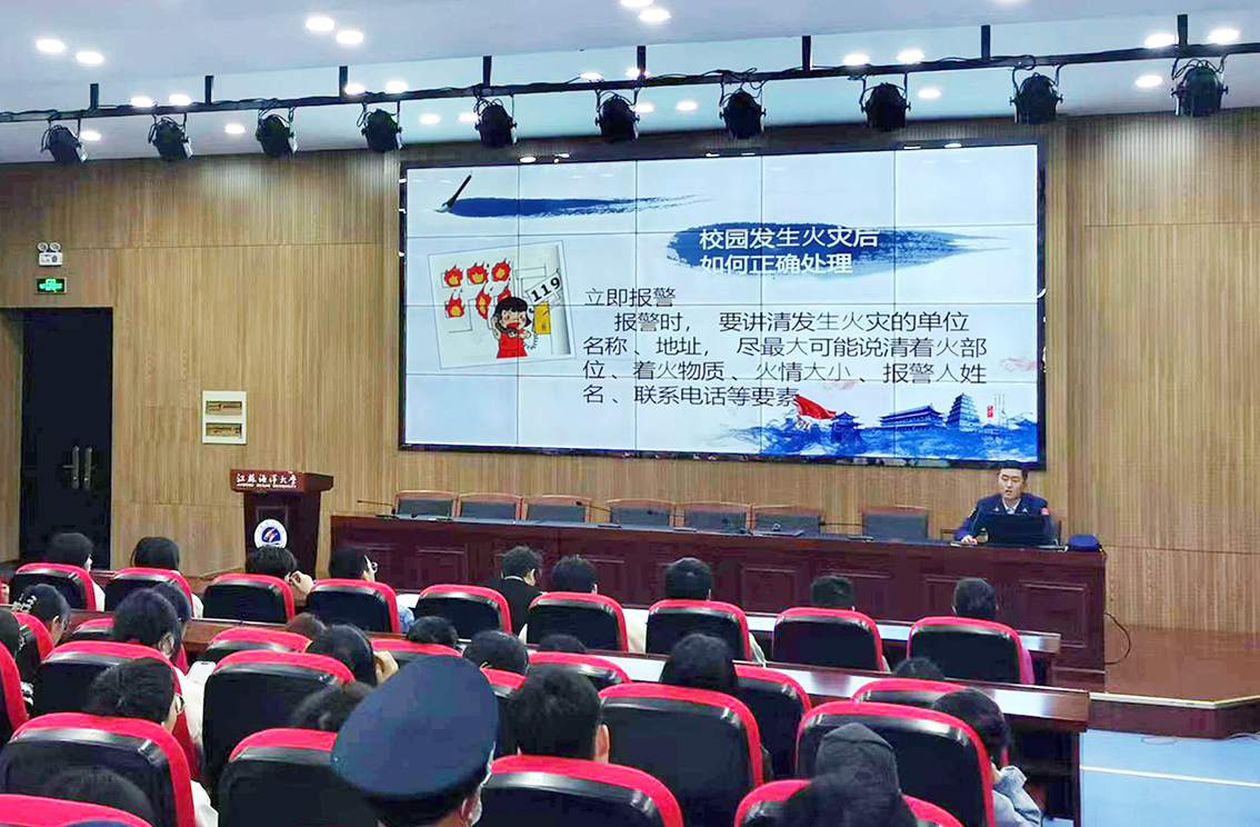 在敦行楼201报告厅,消防大队队长王统棒从近年来校园典型火灾案例入手,强调高校消防安全重要性,围绕“检查消除火灾隐患能力、扑救初起火灾能力、组织疏散逃生能力、消防宣传教育能力”四个方面,向与会师生介绍了消防安全知识。同时,针对校园消防安全的特点,重点讲解了宿舍、实验室、食堂操作间等易发火情场所的注意事项,强调电瓶车违规充电的危害。