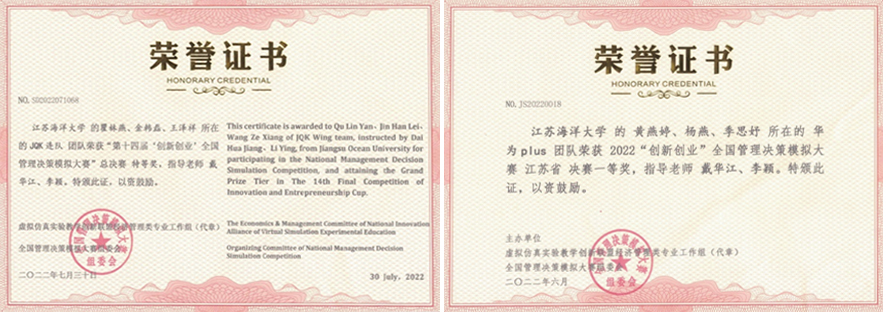 第十四届“创新创业”全国管理决策模拟大赛由虚拟仿真实验教学创新联盟经济管理类专业工作组与全国管理决策模拟大赛组委会主办,重庆邮电大学承办,采用《商道》企业经营模拟系统作为竞赛平台。虚拟仿真实验教学符合教育规律,顺应了时代发展的潮流,对于培养学生独立思考、批判性思维和团队协作实践方面至关重要。经过激烈的竞争,在全国总决赛中, 由金韩磊 瞿林燕 王泽祥组建的“JQK连队”表现优异,荣获全国特等奖。此次大赛,从初赛至全国总决赛,历经数月,取得的这些成绩,离不开学子们的不懈拼搏,离不开指导老师们的认真辅导,每一场比赛都是汗水与努力的堆砌。