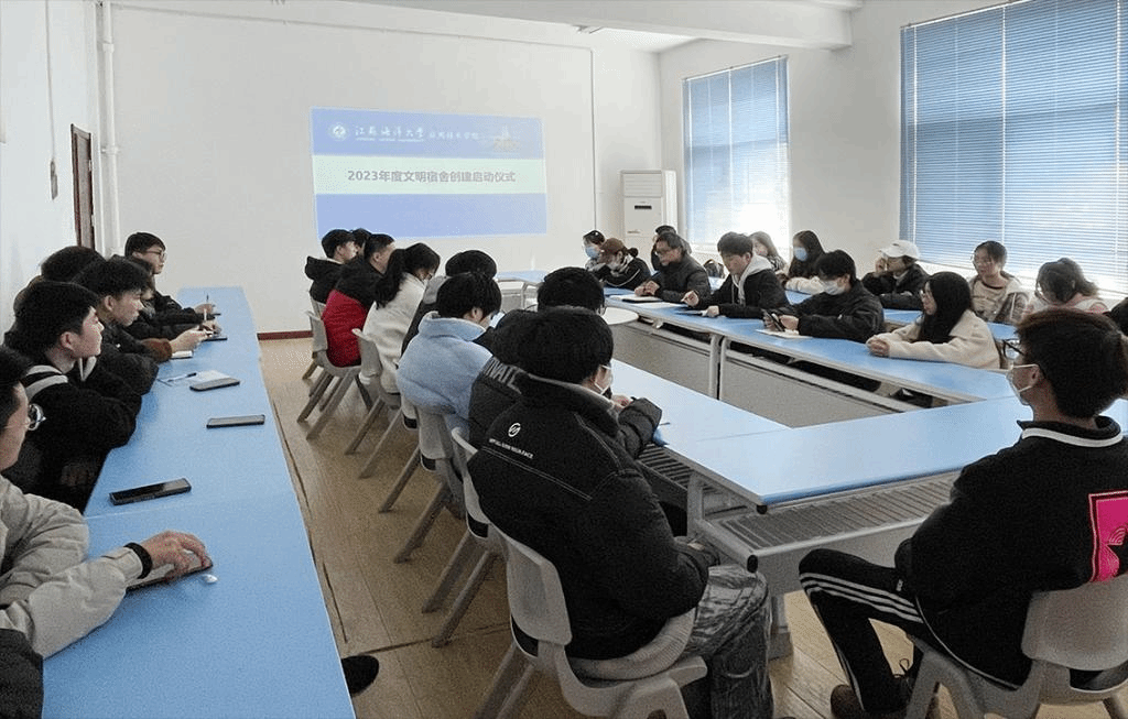 为推进学院文明校园建设,打造宿舍文化品牌,营造安全、文明、和谐的宿舍氛围,进一步调动学生自我管理、自我服务的积极性与主动性,3月1日中午,学院在厚德楼207举行2023年度文明宿舍创建启动仪式,学院党委副书记时树奎、辅导员唐瑞锴、学生公寓全体楼层长和学生会权益部负责人出席了仪式。