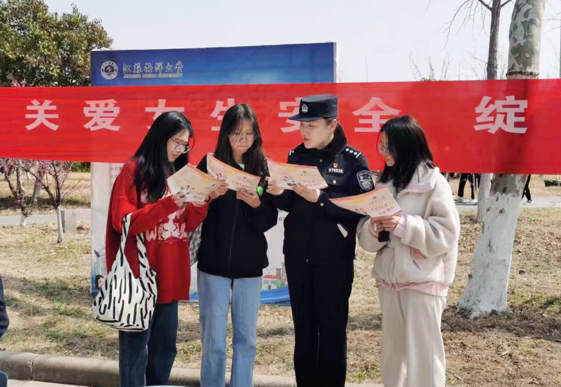 本次活动吸引了众多同学的围观和参与,花果山派出所韩所长、董警官以及全体保卫科工作人员为学院女同学们发放了《青春无悔 校园无诈——致大学生的一封信》《关爱女生安全 绽放绚丽人生——女生如何防范性侵害》《反诈骗简易手册》等安全知识宣传单,并对在青春期如何做好自我保护、如何与他人友善相处、如何有效防范目前高发的诈骗类型三个方面进行了细致深入的讲解。