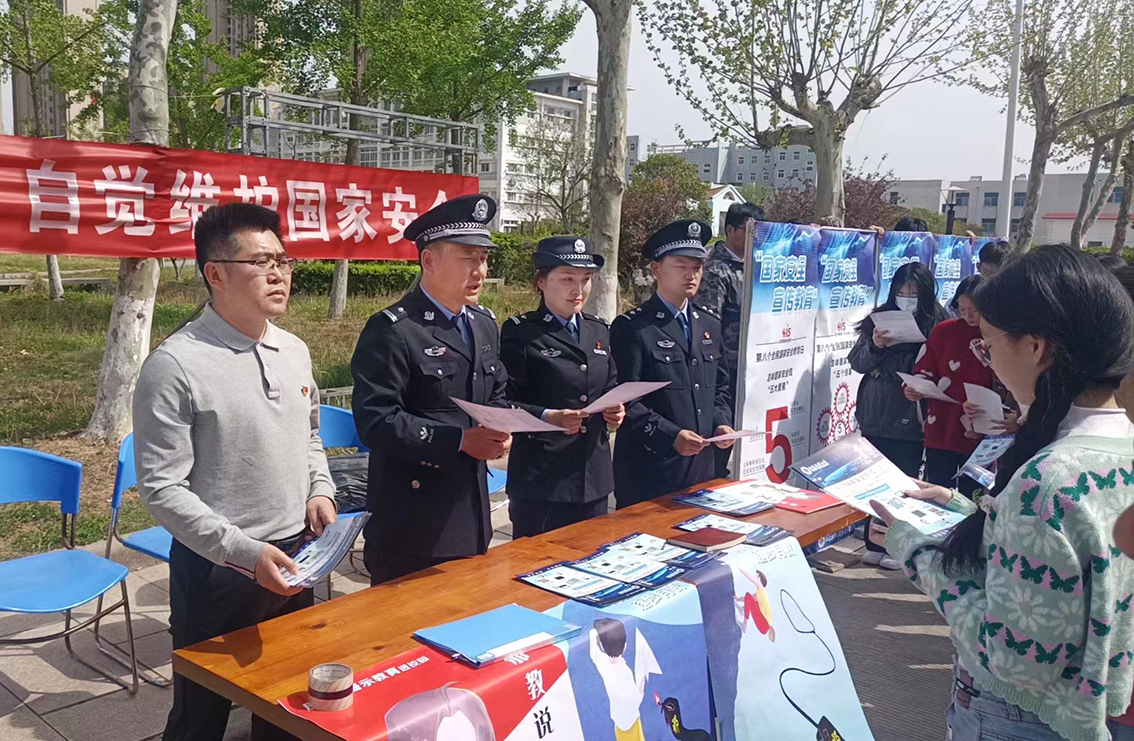 4月13日,学院以“贯彻总体国家安全观,增强全民国家安全意识和素养,夯实以新安全格局保障新发展格局的社会基础”为主题开展宣传教育活动。活动现场,宣传展板依次排开,图文并茂宣传国家安全知识,吸引了很多师生驻足观看。高新区公安局内保大队和花果山派出所民警向学院师生分发国家安全知识宣传单页,用真实案例向学院师生讲解国家安全法规,引导师生牢固树立总体国家安全观,增强国家安全意识,严守国家安全规定,自觉履行维护国家安全义务,为筑牢祖国安全稳定屏障作出应有贡献。