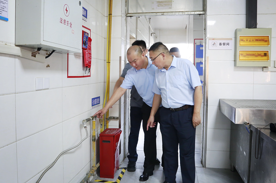 李明金一行重点排查了燃气管网及设施的安全隐患,对校区内餐厅的燃气设备运行情况、用气环境、通风条件、燃气报警设备等进行了检查,确保不漏一处、不留死角。