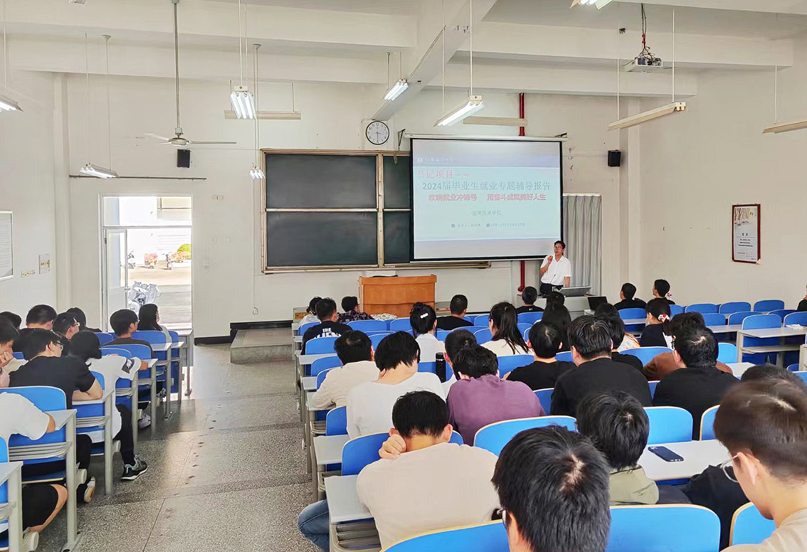 赵求勇介绍了学院鼓励学生赴企业顶岗实习的政策,衷心希望同学们认清形势,坚定信心,明确目标,放平心态,主动出击,早日找到自己理想工作。在分析了当前就业形势时,他提出“想不想工作?为什么工作?如何找工作?”几个问题,向同学们诠释了找工作的常规步骤,指出找工作的关键是思想认识要到位,多点责任与担当。找工作的核心是克服懒惰思想。他强调,一是要多关注辅导员、班主任发布的就业信息,二是要多参加校园招聘会,三是要多关注老师的推荐信息。