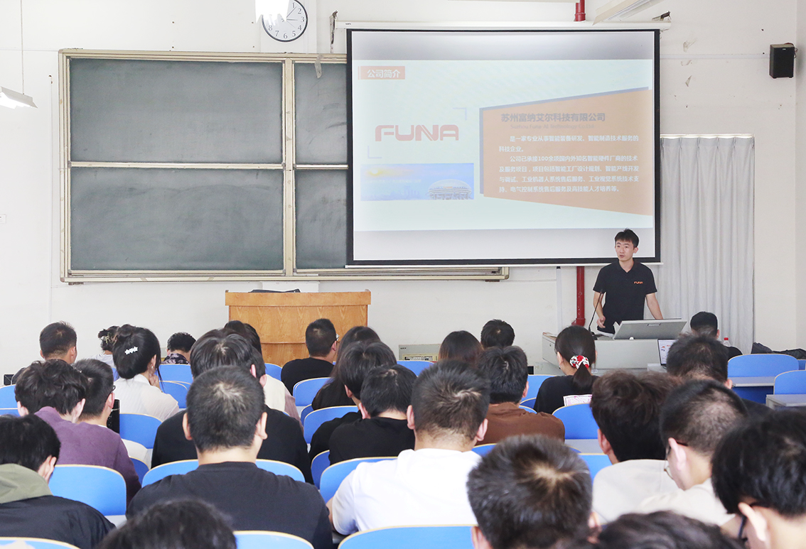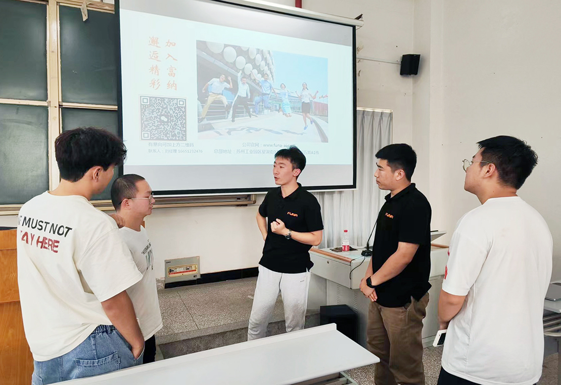 苏州富纳智能科技有限公司人事专员向学生详细展示了公司的基本概况、企业发展情况、产品情况、实习培训及岗位情况、实习生及员工待遇情况、员工发展晋升渠道、员工饮食及住宿条件、企业关怀等情况,并现场与学生进行了互动和问答,加深了学生对企业的深入了解。学生结合自身专业优势和招聘岗位要求,就所关心的职业发展前景和薪资待遇等实际问题与用人单位深入交流,努力为自己寻找满意、适合的顶岗实习和就业岗位。