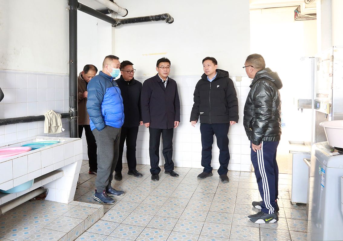 郑利军听取了宋跳校区管委会关于2024年学生宿舍公用卫生间改造、敦行楼外墙粉刷、食堂屋面防水等重点项目情况汇报,实地察看了校区楼宇外观、体育运动场所;走访了学生宿舍、食堂,了解学生学习生活情况,指导学生公寓卫生间改造方案;现场研究食堂排水系统与外墙维修工作,强调专款专用要落实到位。