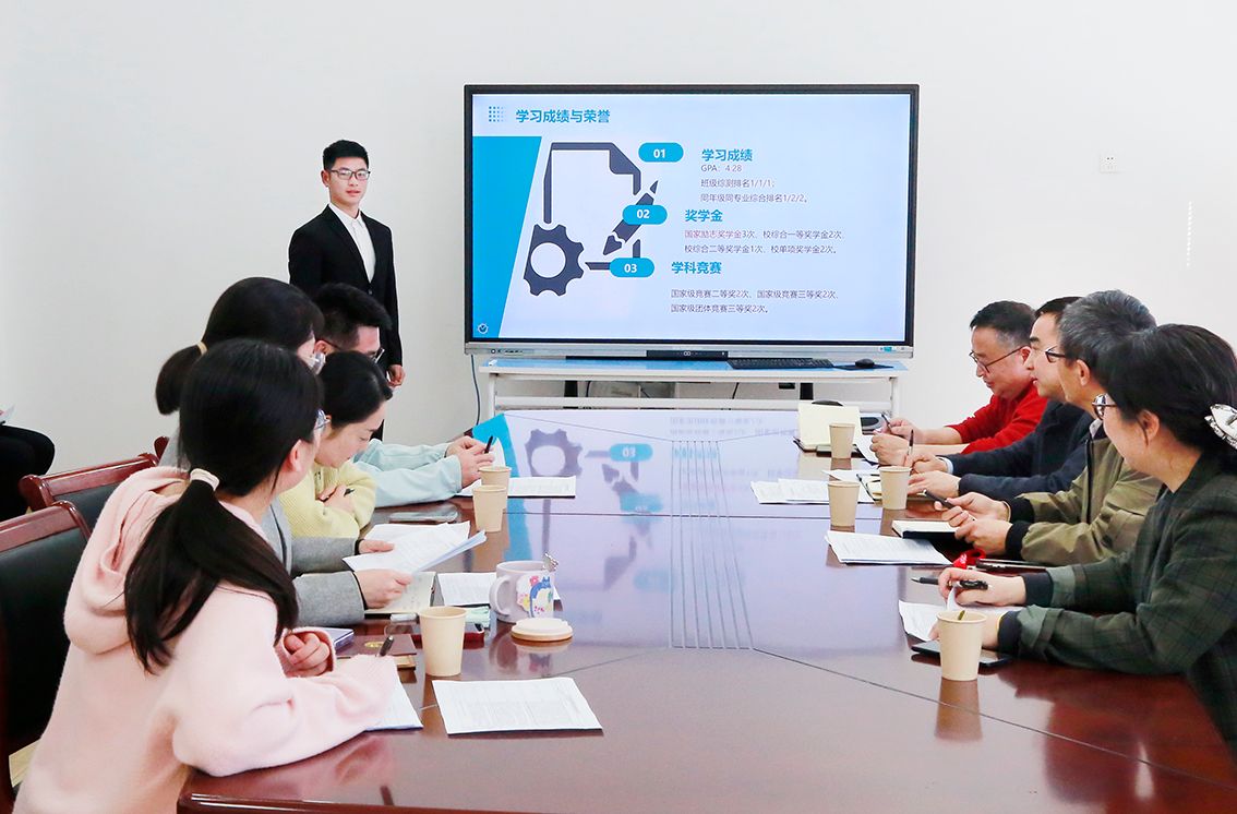 随后,同学们围绕思想道德、学业成绩、学科竞赛、社会服务、社团活动、未来规划等多个方面对大学期间的个人表现及班级成果进行了答辩。“如果幸运有另外一个名字,那么它一定叫努力”“身为班干要重视日常工作总结与分析,入学以来,本人撰写班级总结约40篇”“学海扬帆,行稳致远,综合测评排名连续三年位列第一”“我追随的光是五角星的星光”“愿做一只孤天里的鹤,而非一张写满字的纸”……