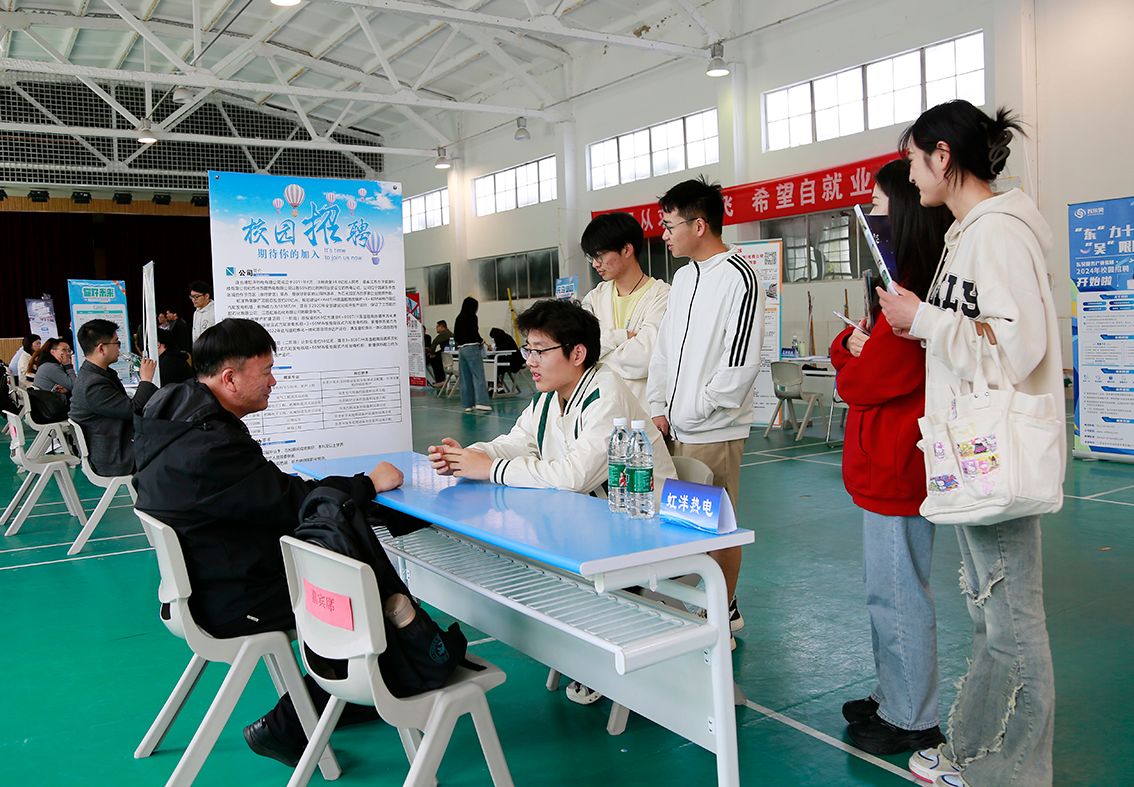 为进一步推进学院2024届毕业生就业工作,落实全国两会关于做好就业工作的重要精神,抓住高校毕业生就业工作关键期,全力促进学院毕业生高质量充分就业,4月20日,学院2024届毕业生春季专场招聘会暨“送岗直通车”直播荐岗活动在学院行健馆举行。