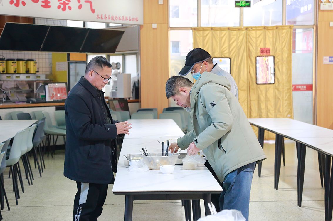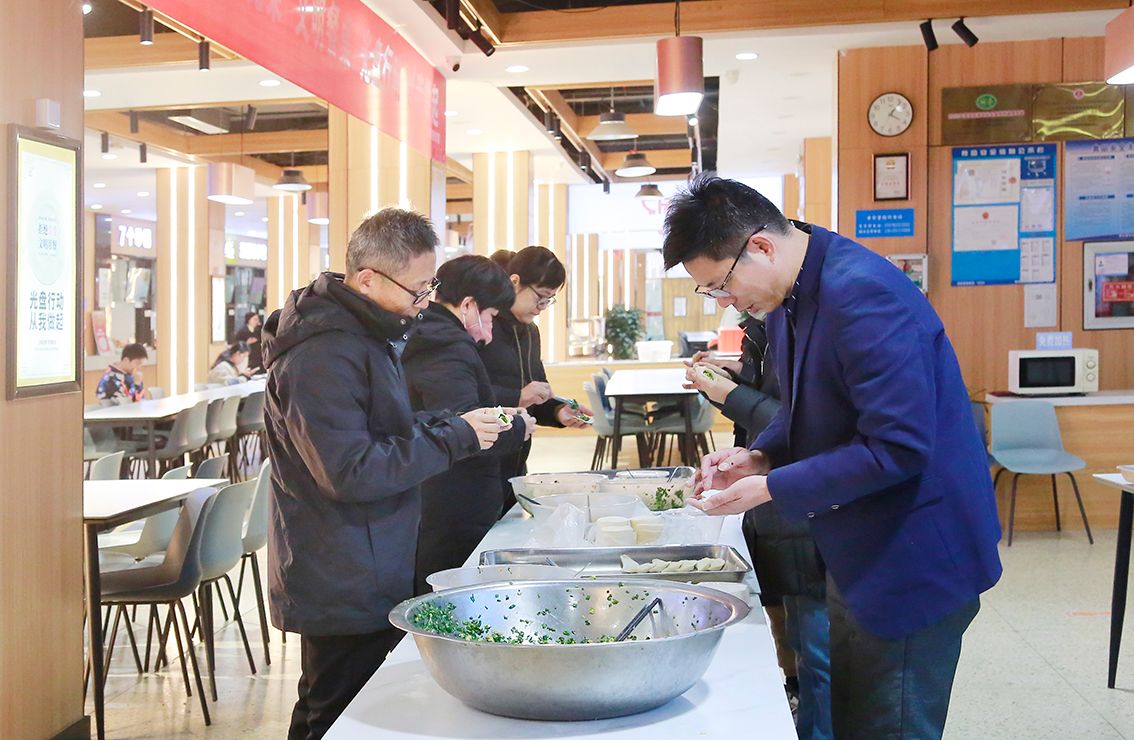 清水飘芙蓉,元宝落玉盘。比赛结束后,全员齐聚学院餐厅一楼包饺子。大家边包饺子,边畅聊工作和生活中的趣事,欢声笑语回荡在每一个角落,温馨融洽的氛围弥漫开来。随着一盘盘热气腾腾的饺子出锅,大家围坐在一起,品尝着合作包的饺子,分享快乐,互相祝福,共迎元旦。