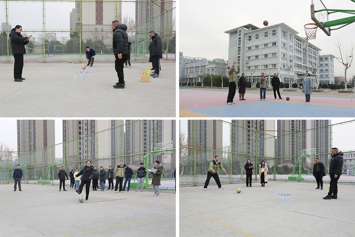 乐聚首,友谊先,竞技场上笑语喧。红色的跑道上,大家欢声笑语、大步向前,一道道身影彰显着活力与健康;足球射门场地上,老师们屏气凝神、助跑飞踢,每次精彩的射门都赢得了阵阵欢呼;篮球场上,一人投球,众人关注,蹬地、跳跃、发力,篮球在空中画出一道道美丽的弧线;趣味保龄球项目,大家持球、瞄准、出手,互相交流投球技巧、互相鼓励,每一次新的记录都会赢得喝彩。