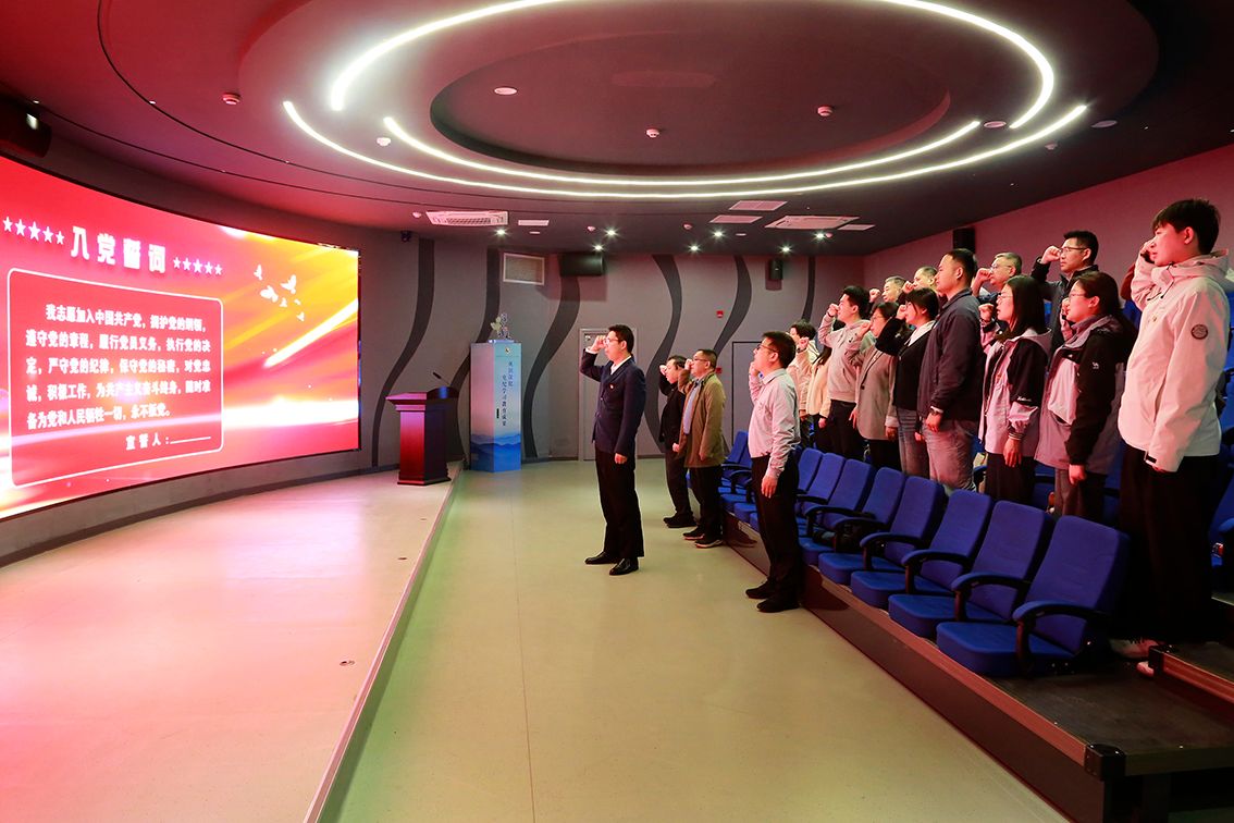 在讲解员的引导下,全体党员参观了场馆内多片展区。通过电子屏幕互动、投影动画展示,全体党员共同了解了伊尹、李汝珍等古代名士的清廉风骨和王继才、侍东亮等时代楷模的先进事迹,展现了无论古今,廉洁品质始终是历史的要求、时代的需求、未来的期求,引发了全体党员的深刻共鸣。后续的警示教育纪录片中一个个典型案例则发人深省,让大家真切感受到党在全面从严治党道路上有腐必反,有贪必肃的坚定意志,从思想上正本清源、固本培元,自觉做到心有所畏、言有所戒、行有所止。最后,在院党委书记赵求勇的带领下,全体党员在观影厅重温入党誓词,以誓言明正本心,牢记清廉要求,坚守职责所在。