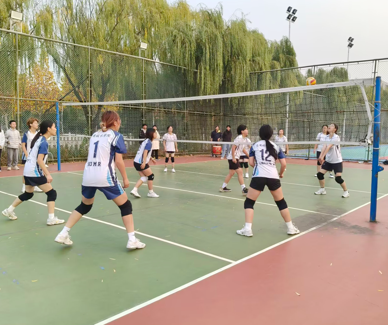 八进四比赛,我院再度遭遇艺术学院。首局失利的局面并未击垮队员们的斗志,相反,她们及时调整节奏、逐步掌控场面,以2:1逆转取胜,挺进四强。