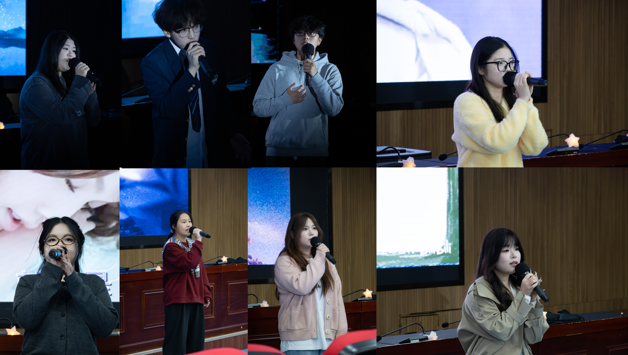 随后,十位参赛选手依次登台,用歌声传递情感与力量。管理4252班的俞倩一首《至少还有你》唱出似水柔情,像是把岁月揉进月光,让全场观众在“如果全世界我也可以放弃”里瞬间安静,只剩心跳与她同频;中文4252班的王润盈用《雨爱》描绘出暧昧情人的朦胧情愫,替所有“友达以上,恋人未满”的人说出了不敢说的秘密;计算机3251班詹薛晴《想你时风起》带着青春的澄澈,唱出少年心事里最柔软的悸动——“如果离别是为了能再见一面”……选手们的演唱各有特色,或深情婉转、或高亢有力,将比赛氛围一次次推向高潮。
