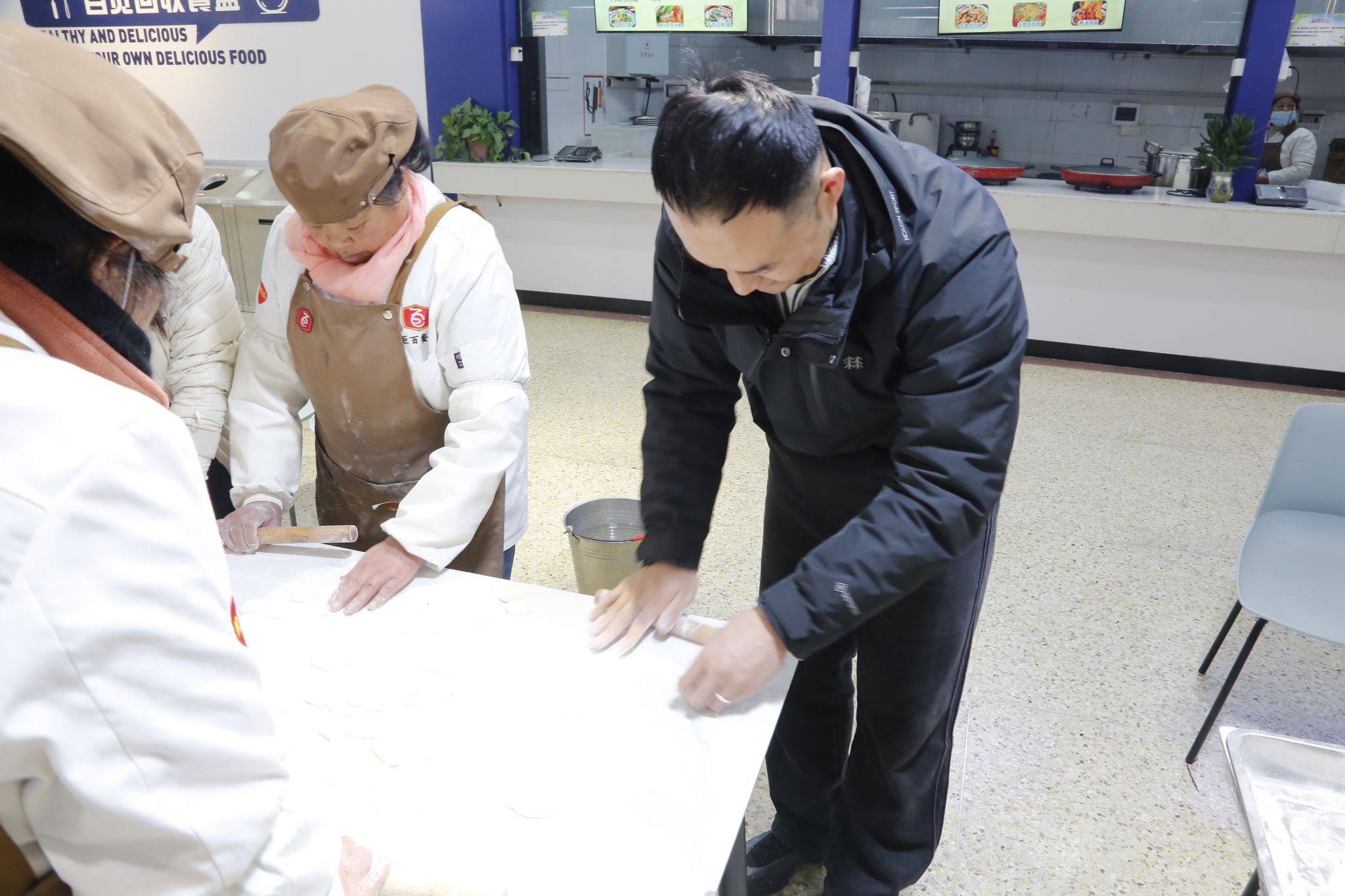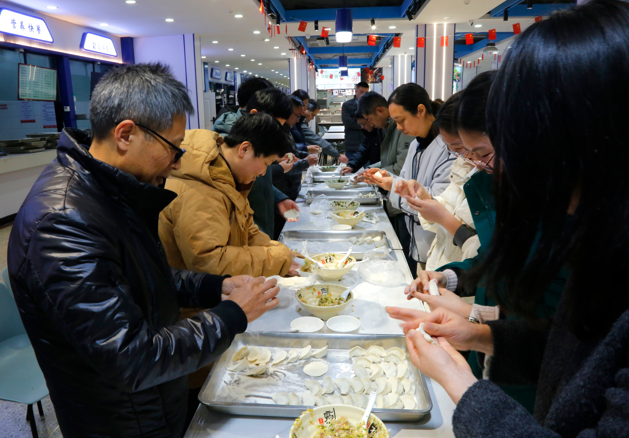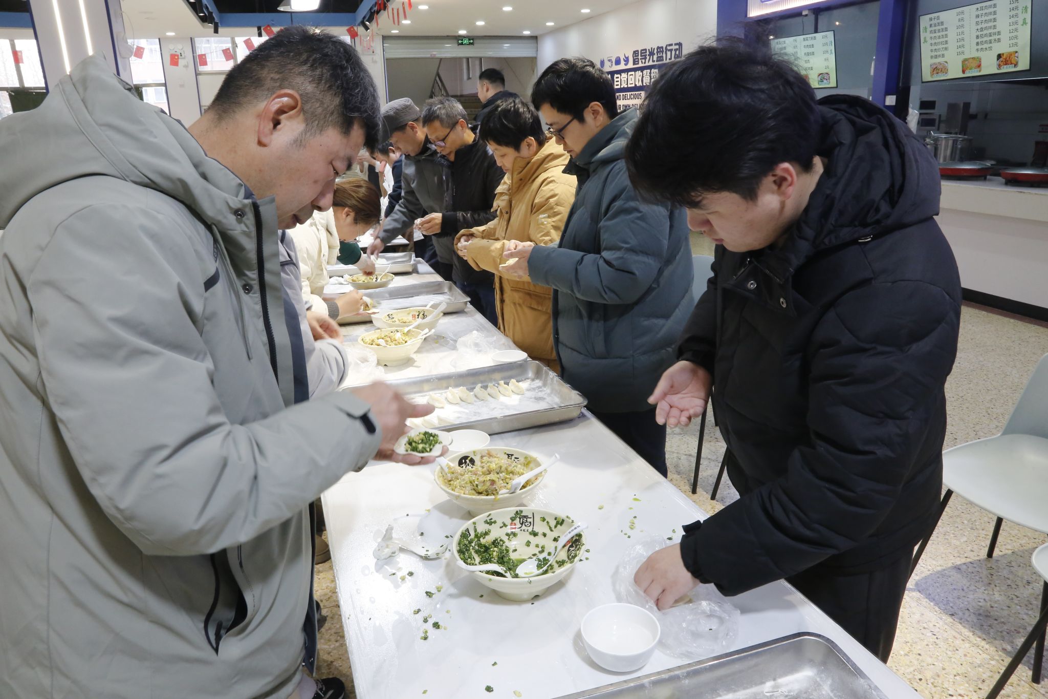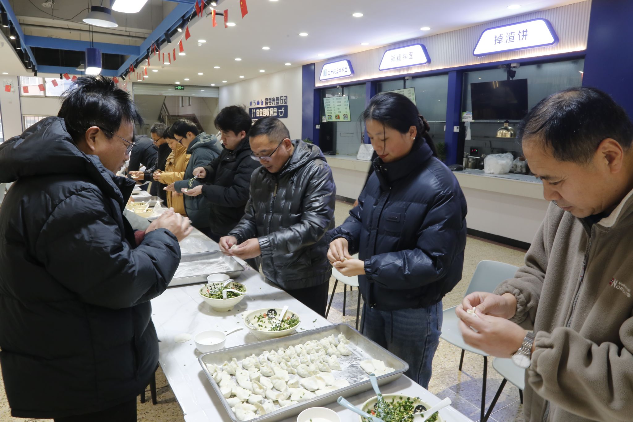 活动伊始,在学院领导的带领下,大家分工协作,和面、擀皮、调馅、包饺子,配合默契,忙得不亦乐乎。一张张饺子皮在巧手中翻飞,一个个形态各异的饺子摆满托盘,既有传统造型,也不乏创意十足的新花样。大家边包饺子边交流生活趣事,现场气氛热烈而温馨,笑声不断,暖意融融。