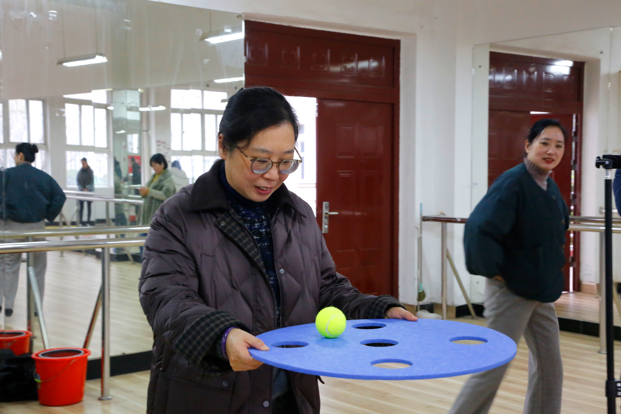 窗外冬雨淅沥,窗内热度蒸腾。12月23日下午,学院2025年“欢乐运动迎新春,团结奋进启新篇”教职工趣味运动会敦行楼101舞蹈房欢乐上演。本次趣味运动会共设置趣味保龄球、沙包投掷靶心赛、筷子夹球比赛、四平八稳运球竞赛、你演我猜互动竞赛五个项目,既追求趣味与挑战,又强调合作与沟通,让教职工们在欢笑中舒缓压力、在协作中凝聚心力。