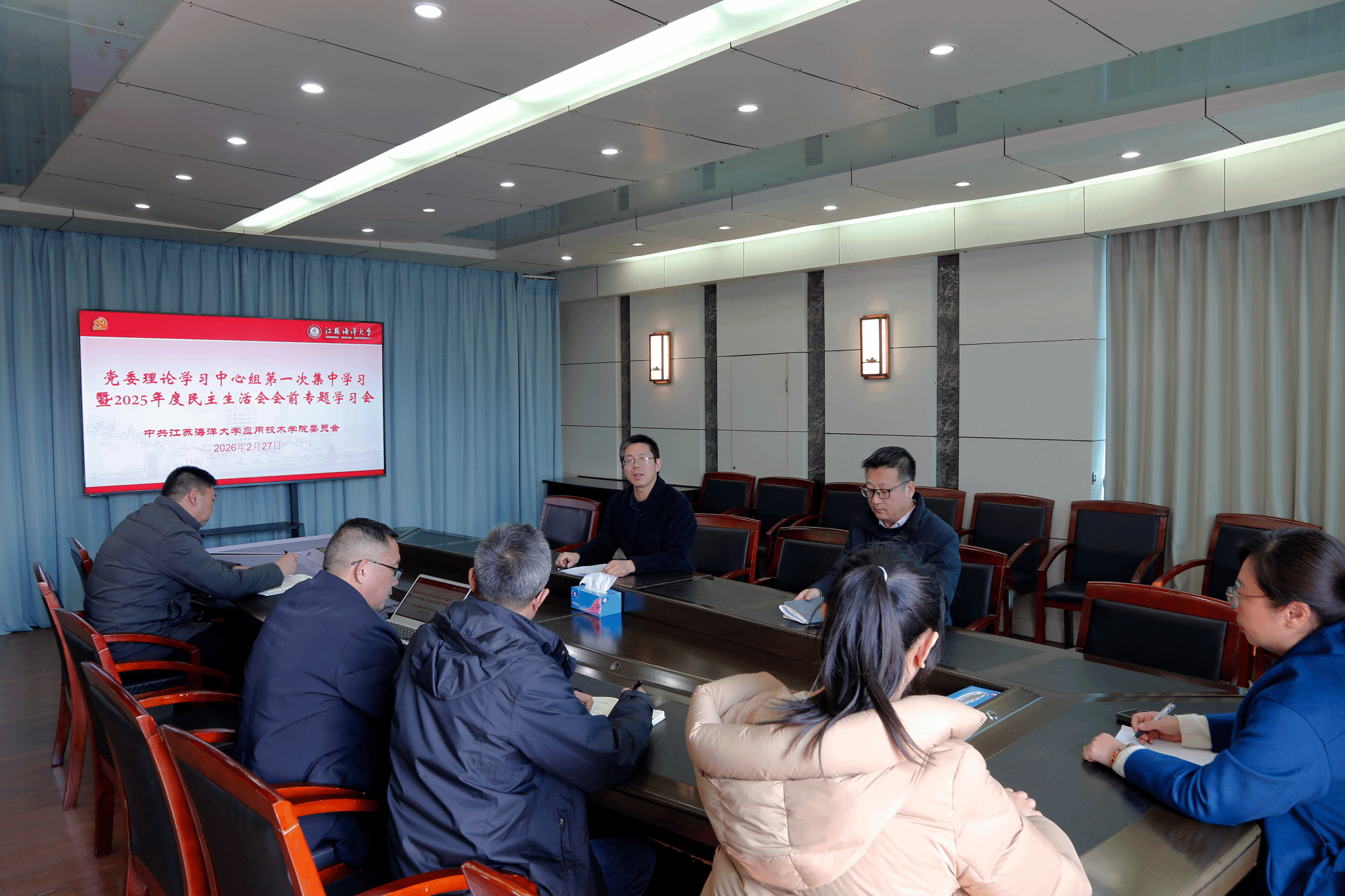 2月27日,学院于行政楼三楼会议室召开党委理论学习中心组第一次集中学习暨2025年度民主生活会会前专题学习会,深入学习近期中央重要会议精神和习近平总书记重要讲话精神。院党委书记赵求勇主持会议,中心组全体成员参会。