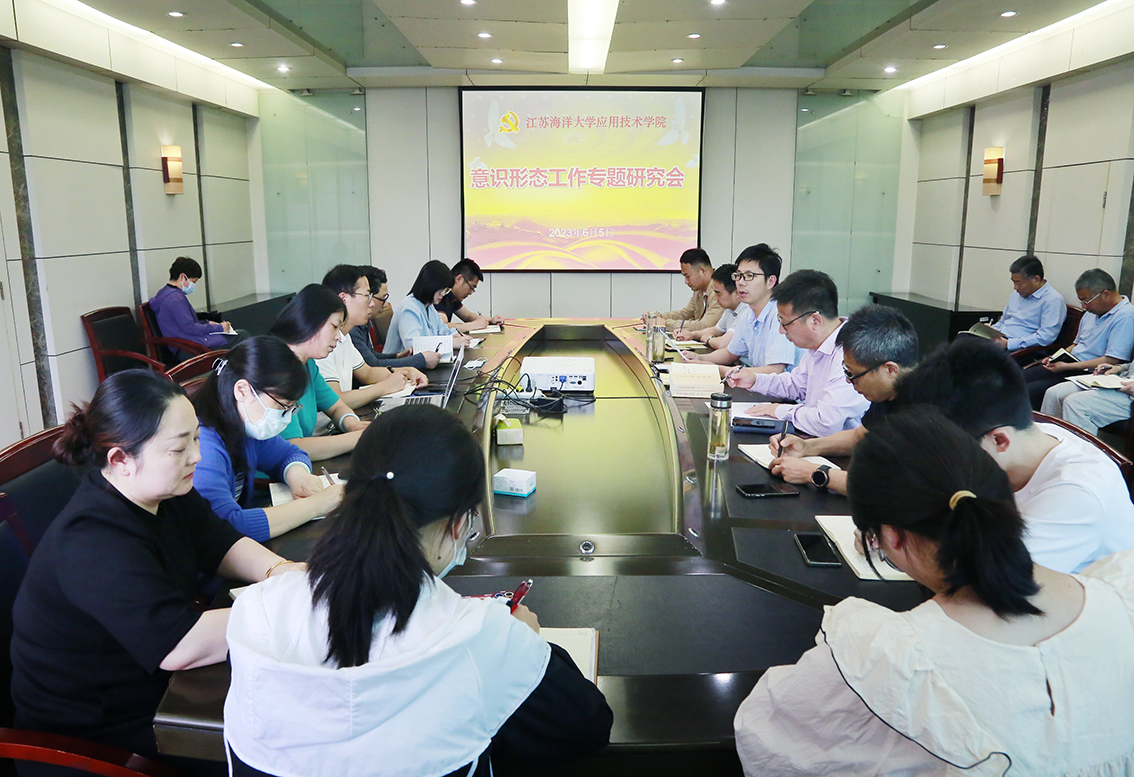 6月5日下午,学院在行政楼三楼会议室召开意识形态工作专题研究会。院党委书记赵求勇主持会议,院党委中心组成员、支部书记、部门负责人、党政办成员以及全体辅导员参加会议。