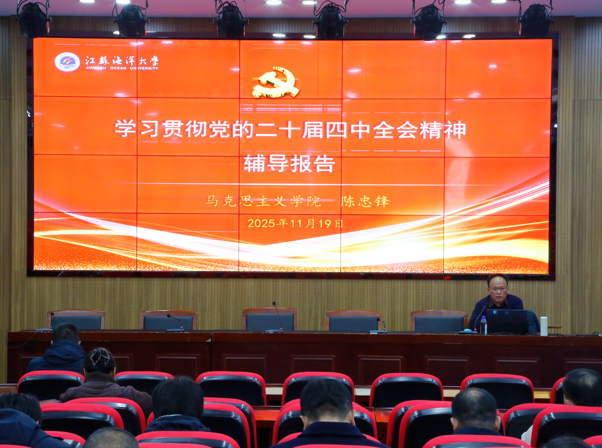 11月19日,学院在敦行楼报告厅召开深入学习贯彻党的二十届四中全会精神专题教职工理论学习会,邀请马克思主义学院陈忠锋教授作讲座,院党委书记赵求勇主持会议,全体教职工参会。