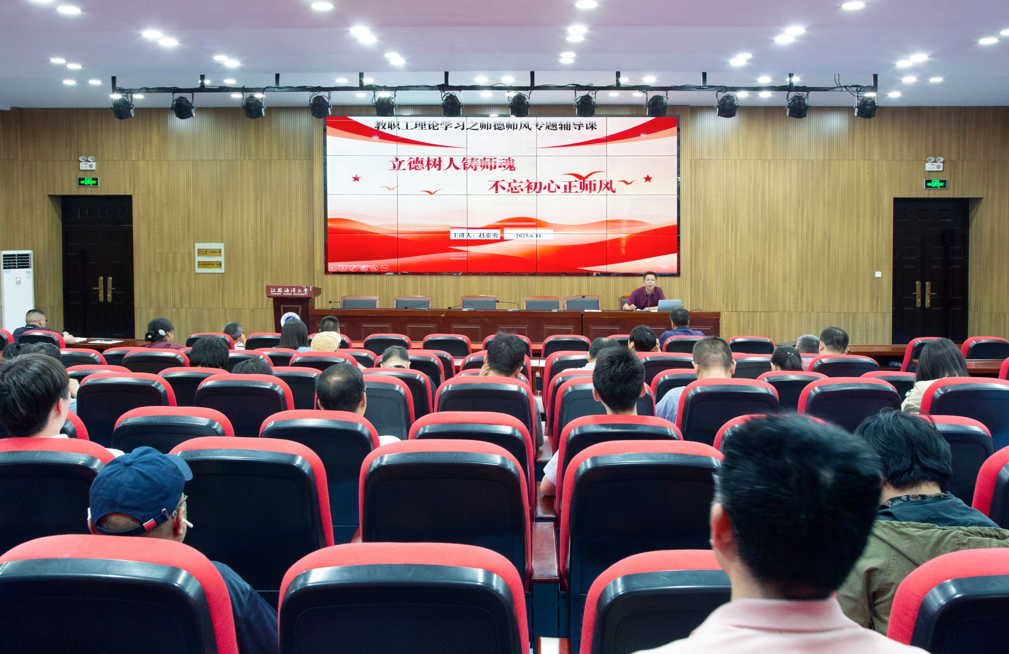会议最后,赵求勇为与会人员做题为《立德树人铸师魂 不忘初心正师风》的师德师风教育专题辅导课,从师德内涵、失范行为、正风举措三方面阐述了教师道德修养在高校立德树人根本任务中的重要性,指出学院人才培养、科学研究、社会服务、文化传承等职能的实现,离不开教师高水平的个人修养和自省自律意识。承载着为党育人、为国育才的历史使命,肩负着培养社会主义建设者和接班人的时代重任,教师应以最大的社会责任感和最饱满的工作热情,筑牢思想根基,塑造良好形象,陶冶个人情操,自觉做到清廉守正,为学院高质量发展做出实实在在的社会贡献。