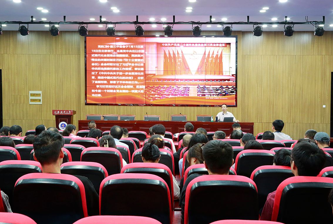 9月25日下午,学院在敦行楼报告厅举行了学习宣传贯彻党的二十届三中全会精神专题辅导报告会,特邀请了校党委常委、宣传部部长王波为全体教职工和学生党员作专题辅导报告,院党委书记赵求勇主持会议。