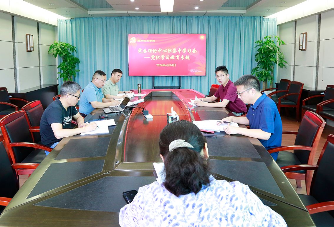 6月24日上午,学院在行政楼三楼会议室召开了党纪学习教育专题党委理论学习中心组集中学习会,院党委书记赵求勇主持会议,理论学习中心组其他成员出席会议。