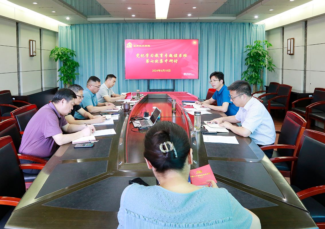 6月18日下午,学院党委在行政楼三楼会议室开展党纪学习教育专题读书班第七次集中研讨。院党委书记赵求勇主持会议,全体党委委员参加。