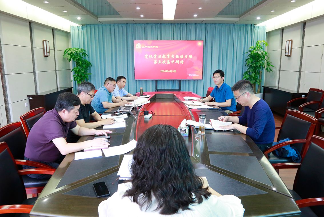 6月5日上午,学院党委在行政楼三楼会议室开展党纪学习教育专题读书班第五次集中研讨。院党委书记赵求勇主持会议,全体党委委员参加。
