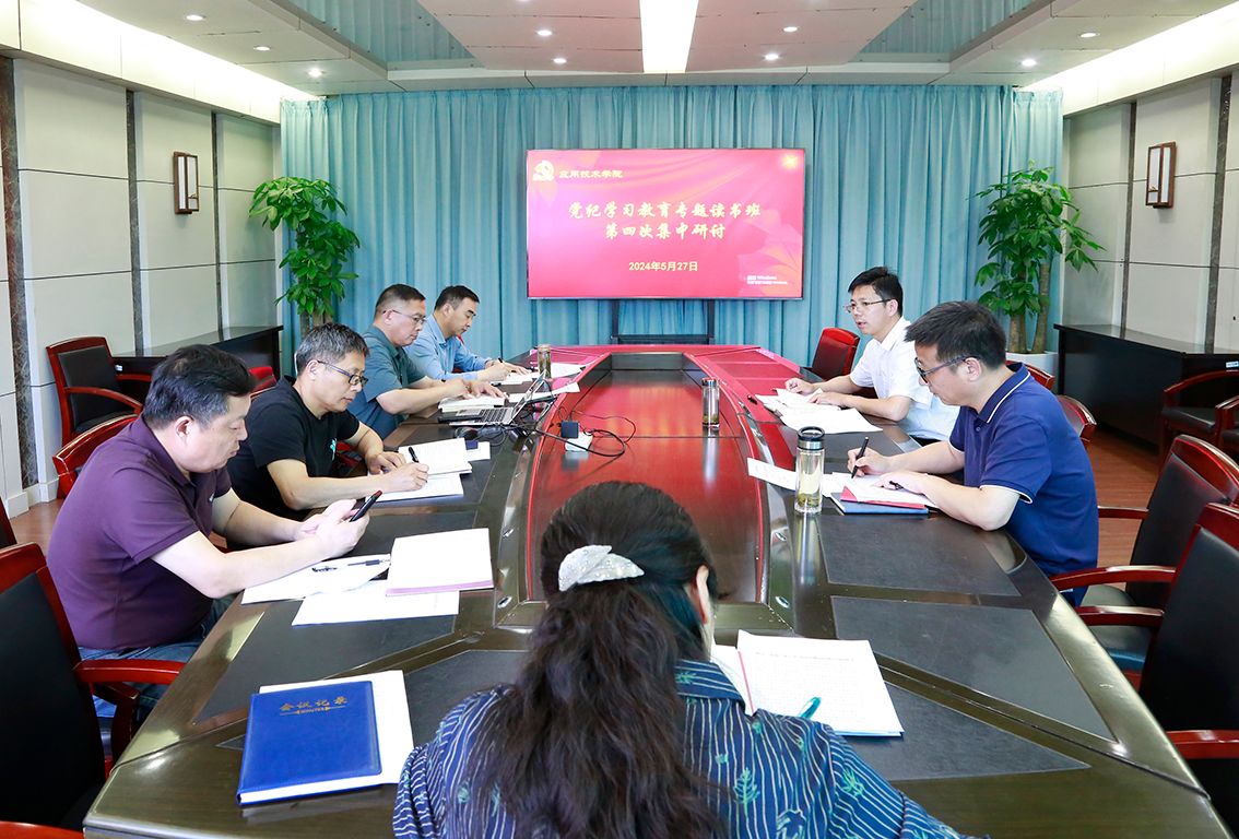 5月27日下午,学院党委在行政楼三楼会议室开展党纪学习教育专题读书班第四次集中研讨。院党委书记赵求勇主持会议,读书班全体成员参加。