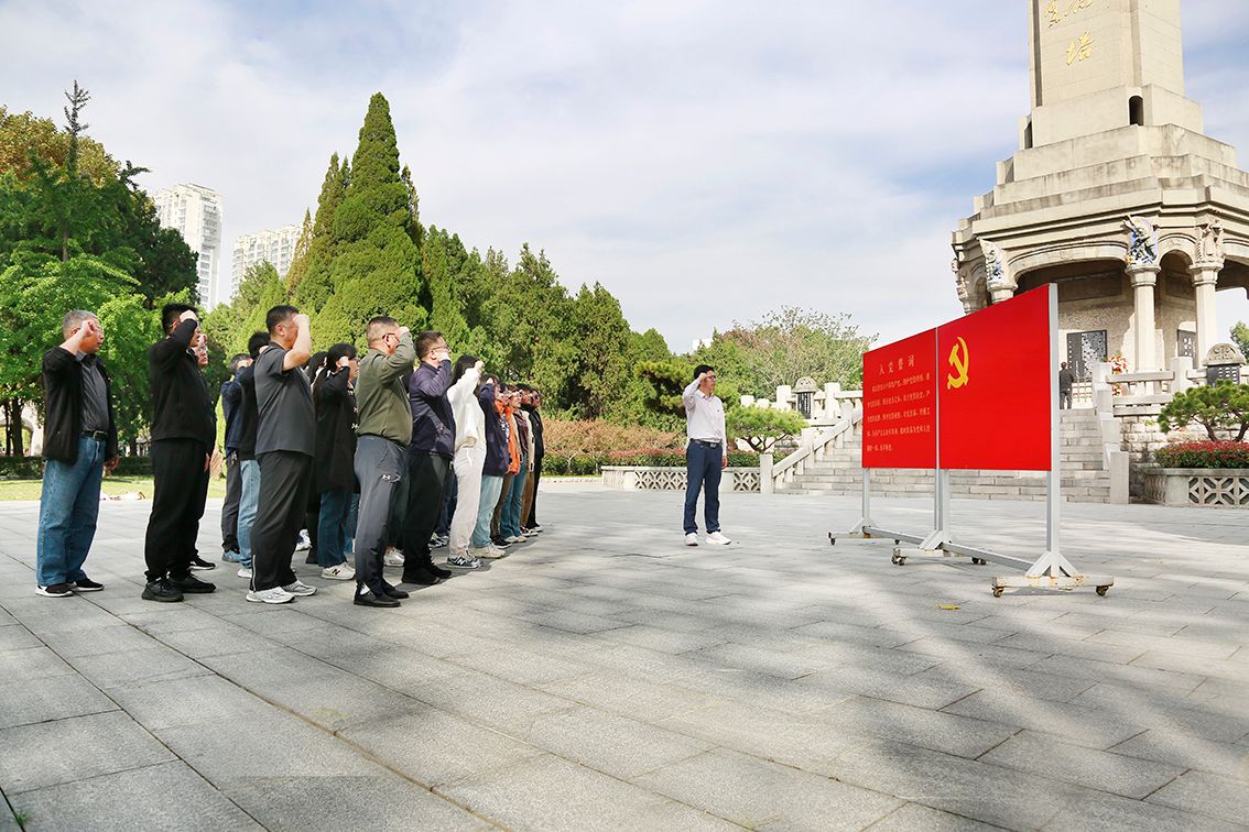 宣誓毕,全体党员继续瞻仰陵园中的革命烈士纪念堂、革命烈士公墓、抗日浮雕长廊、仰风承志亭、粟裕将军骨灰撒放处、罗炳辉烈士墓等,一段段历史浮现在眼前。不论是抗日战争期间的英勇杀敌,还是在解放战争期间的浴血奋战,都凝聚着革命烈士们的伟大爱国主义和共产主义精神。