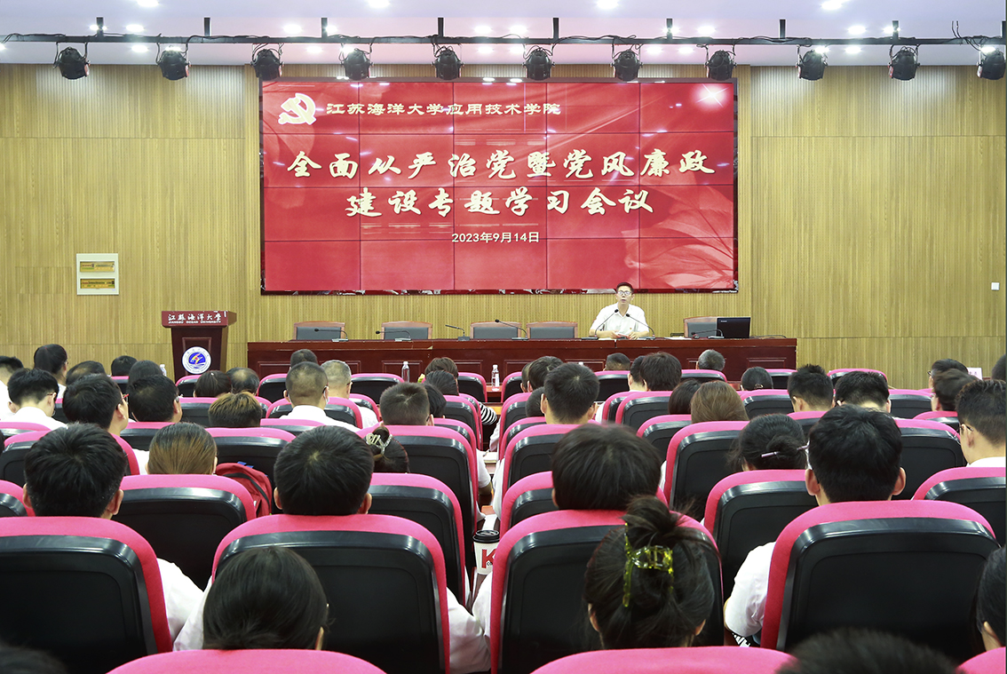 9月14日下午,学院在敦行楼报告厅召开了全面从严治党暨党风廉政建设专题学习会。院党委书记赵求勇主持会议,全体党员参加会议。