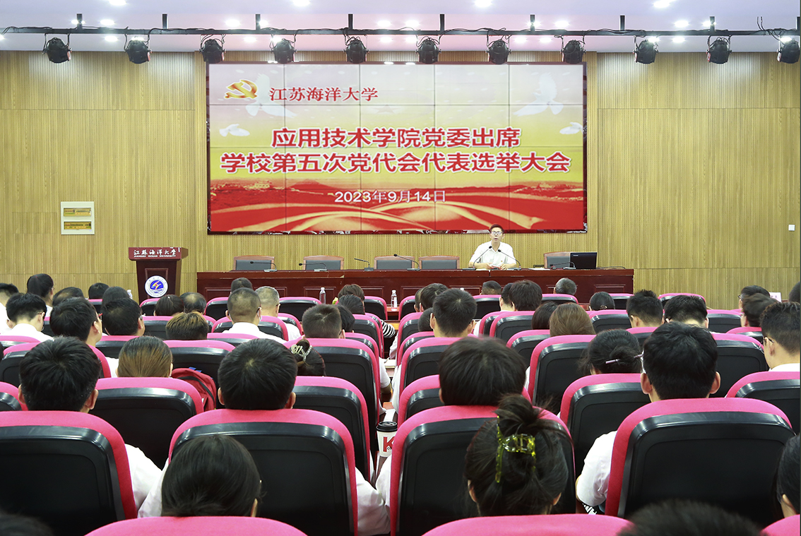 按照中国共产党江苏海洋大学第五次党员代表大会有关安排及选举工作要求,9月14日下午,学院党委在敦行楼报告厅召开全体党员大会,选举出席校第五次党员代表大会代表。院党委书记赵求勇主持会议。