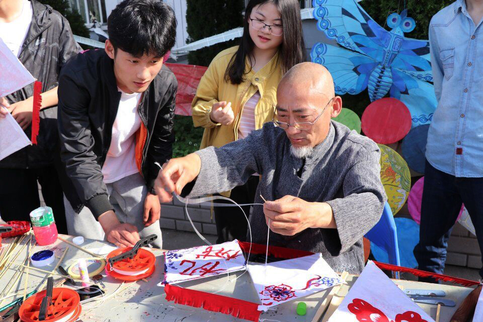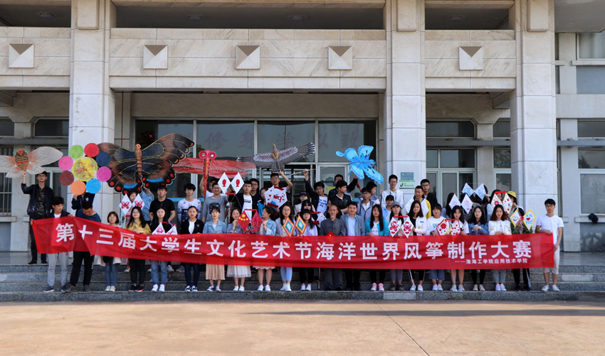 5月9日下午,学院承办校第十三届大学生文化艺术节海洋世界风筝制作大赛在敦行楼前举行。活动以“传承非遗技艺,放飞大学梦想”为主题,邀请了市风筝协会理事、赣榆区风筝协会原会长、非遗传承人王维良进行了现场指导。