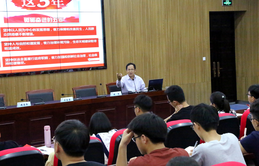 培训班开学典礼后,周清华为学员讲授了第一讲专题——《全国两会精神解读》。