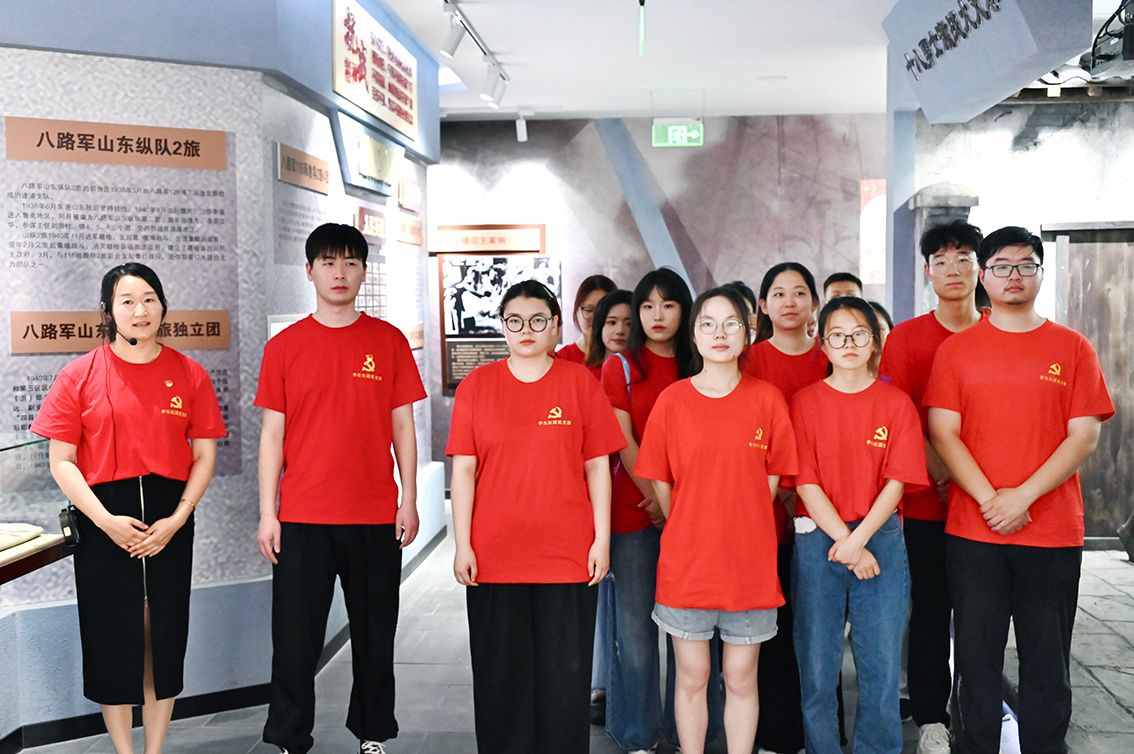 实景课堂,在历史现场感悟信仰力量。党支部书记陈姝含以"血战火叉巷"战斗遗址为课堂,深情讲述了八路军115师教导二旅二团的十八位勇士为掩护主力部队转移,与数倍于己的日伪军殊死搏斗的英雄事迹。在青口十八勇士纪念馆中,党支部党员沉浸式参观历史照片、战斗遗物及雕塑。受伟大的抗战精神感染,党支部党员在青口十八勇士的雕塑前庄严宣誓,重温入党誓词,铿锵有力的誓言在纪念馆广场久久回荡。