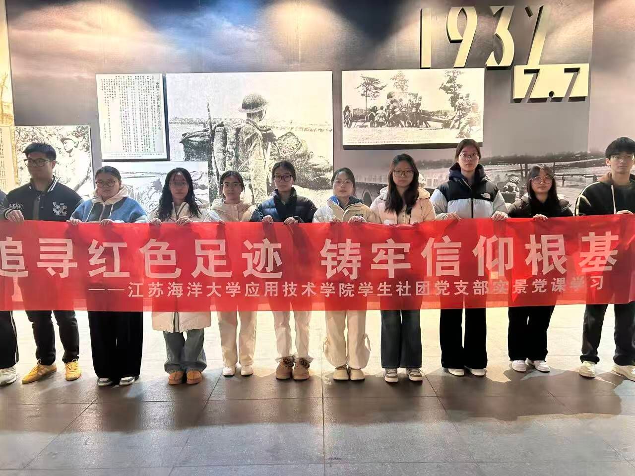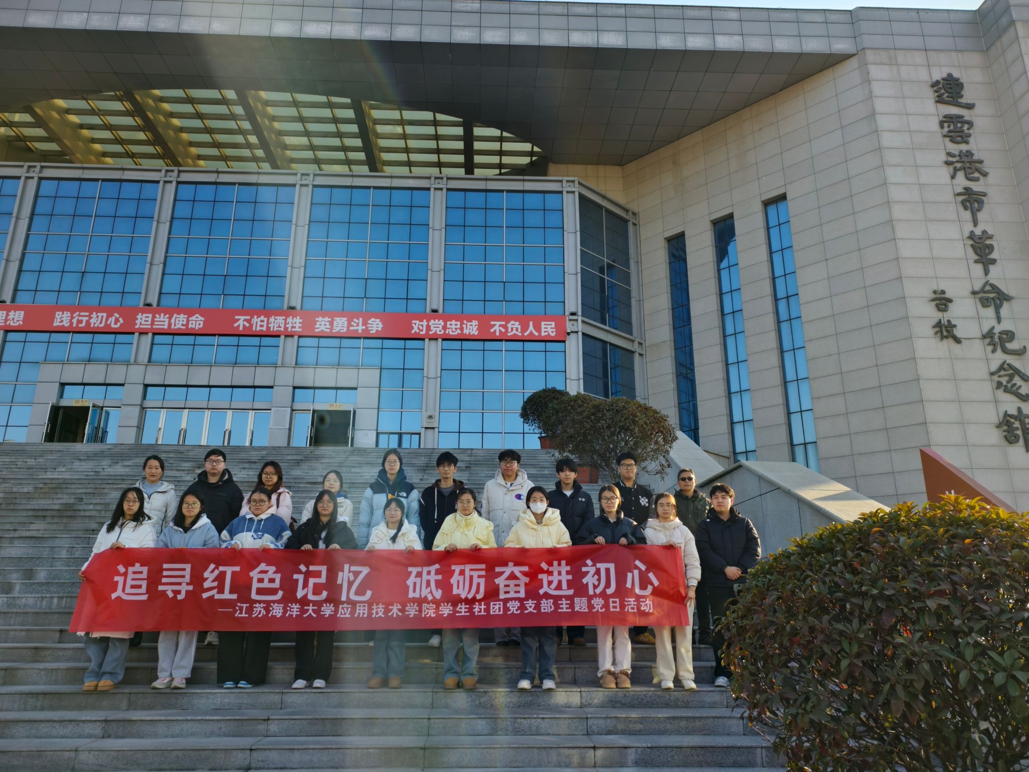 为引领广大青年学生传承红色基因、筑牢信仰根基,近日,学院学生社团党支部组织师生党员前往连云港市革命纪念馆,开展“追寻红色记忆,砥砺奋进初心”主题党日活动,并开展了沉浸式实景课堂学习。学院党委副书记时树奎和支部师生党员共同参加此次活动。