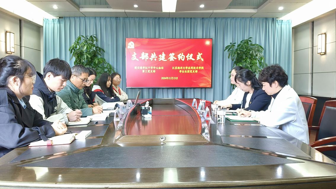 为扎实推进基层党建提质增效,实现校地优势互补、工作互动、共同发展,11月13日上午,学院学生社团党支部与连云港市中心血站第三党支部在宋跳校区行政楼三楼会议室举行支部结对共建签约仪式。学院党委副书记时树奎,市中心血站党委委员、副站长赵小娟出席签约仪式。双方党支部党员代表、青年志愿者代表共同出席了此次活动。