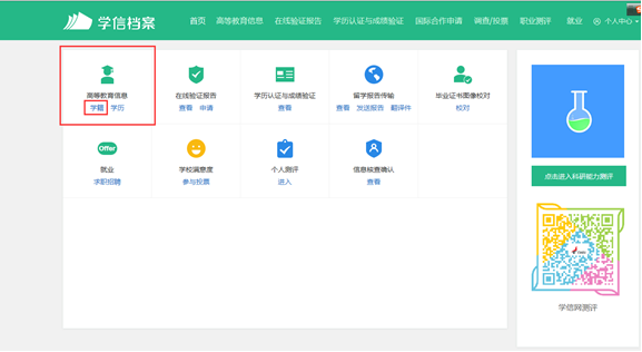 第八步:选择“高等教育信息(学籍)”进入