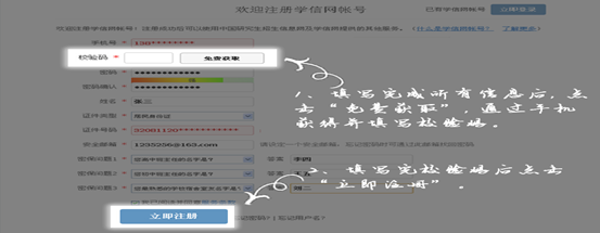 第四步:填写注册信息,并获得校验码(注意一定要先填写完成信息后再获取校验码,因为校验码有时间限制)