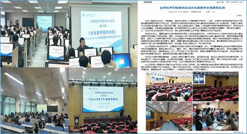 请企业主管或工程师进校为学生授课,开设“企业大讲堂”。邀请京东电商一体化讲师团、贝壳TTT认证讲师等为学生开设“校企合作企业课程讲堂”、《新媒体营销》等特色课程或校企融合专题报告会。学院聘请了江苏极刻知学信息技术有限公司工程师、常州市极课软件技术培训有限公司工程师进校,为2021级对口单招计算机科学与技术专业学生开展“javaB/S应用开发”、“Echarts大屏数据可视化服务平台”实训课程。邀请起点编程资深讲师做“疫情后时代,IT将何去何从” “ChatGPT为何突然爆火”讲座。
