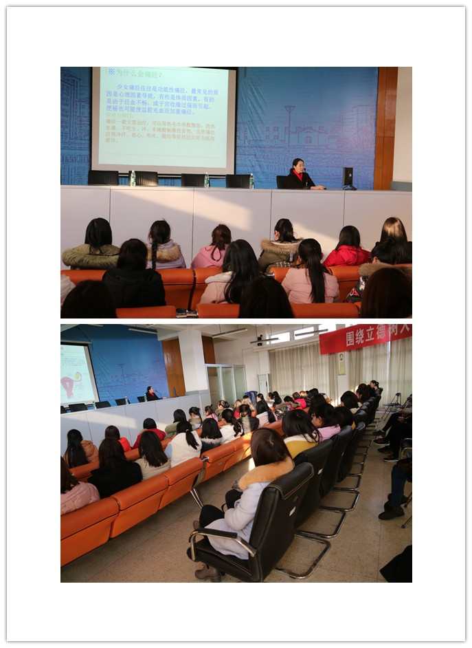 为了庆祝3月7日“女生节”,我院举办了认识自我、美丽自我、善待自我的关爱女性健康知识讲座。特邀江苏省卫生行业“十佳医德医风楷模”、“省333高层次人才培养工程”首批中青年科学技术带头人、江苏省“桥爱工程·送温暖医疗队”医疗专家”、连云港市第二人民医院妇产科主任医师李萍老师,海州区妇幼保健所所长吴春林前来授课。