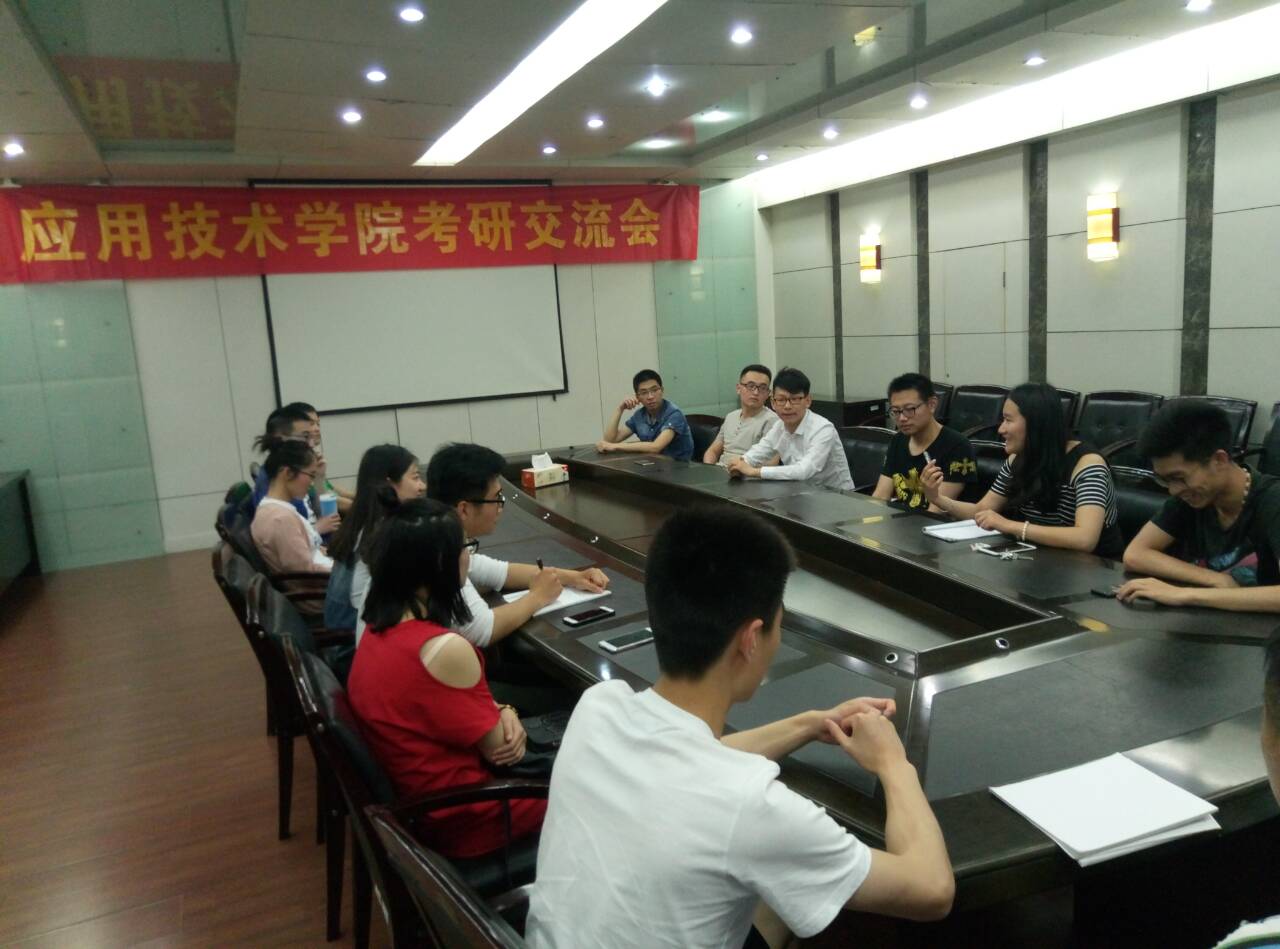为了帮助学生做好学业规划,宣传考研学子优秀典型,在学生中树立朋辈榜样,营造优良学风。我的青春故事分享会之“研途风景”在行政楼三楼会议室举行。计算机专业的班主任、考取研究生的3位学长和14级有考研意向的学生参加了本次交流会。