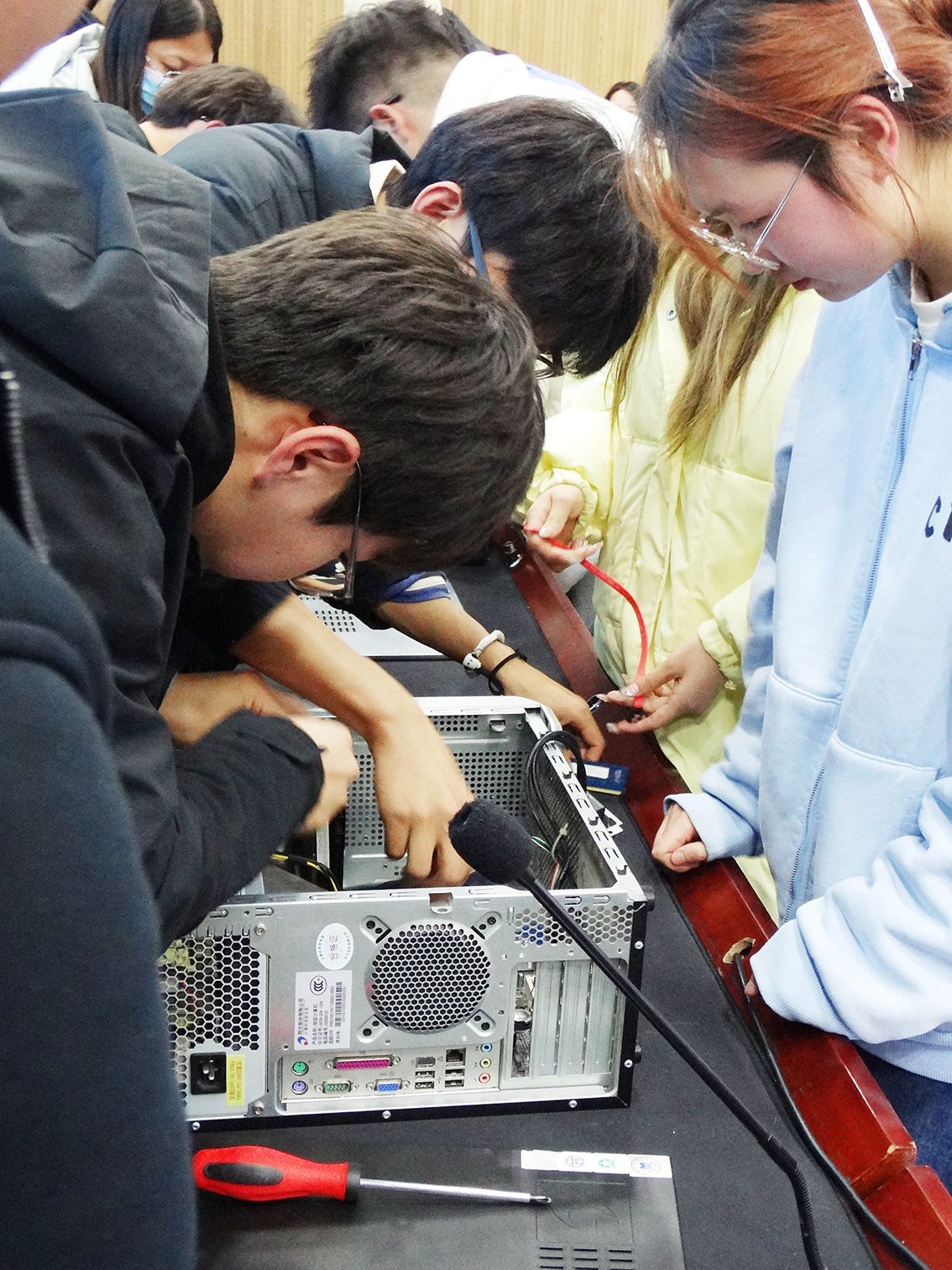 通过初赛选拔,共有6支队伍脱颖而出进入决赛,决赛共包括计算机基础知识比拼和现场拆装机两个部分。在基础知识比拼环节,6支队伍的选手们聚精会神紧盯题目,快速而又准确地作答赢得现场观众热烈掌声。在拆装机环节,各队选手眼花缭乱的拆装机操作动作,使得这场理论与实践相结合的较量更加精彩。最终,经过激烈角逐,“公主说的都队”“五花肉排队”“啥都不会队”三支队伍分别荣获本次比赛的一、二、三名。
