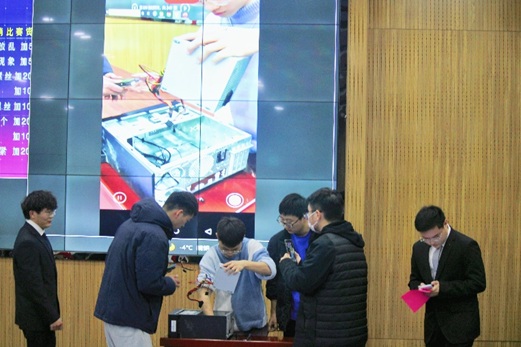 来自海洋科学与水产学院,艺术设计学院,应用技术学院的8支队伍最终进入决赛。本次大赛共分为三个部分,分为必答题环节,抢答题环节和拆装机项目。必答题环节选手,选手你争我夺,抢答题部分更是竞争激烈,是选手手速和知识储备的双重比拼。后半场的拆装机实操部分,选手们紧张地进行着拆装机的比拼,速度与手法均是专业,难分伯仲。