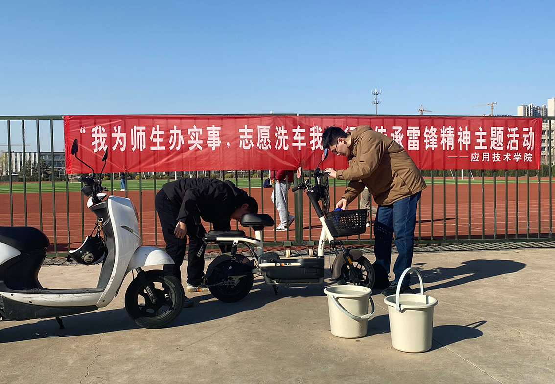 为进一步弘扬和传承雷锋精神,扎实推动学院“我为师生办实事”实践活动开展,学院团学组织3月20日在敦行楼前举办 “我为师生办实事,志愿洗车我先行”志愿洗车服务活动。辅导员王鑫彤、季夕童、邹翔宇以及30多名来自团委、学生会的同学拎着水桶、拿着抹布,共同为学院师生擦洗车辆。