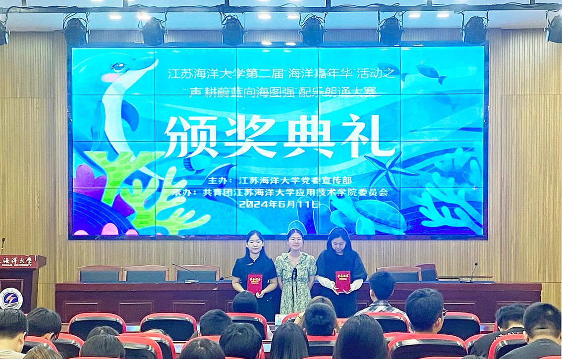 为提升学生对保护海洋重要性的认识,引导广大青年学子关心海洋、认识海洋、经略海洋,6月11日,由江苏海洋大学党委宣传部主办,应用技术学院团委承办的江苏海洋大学第二届“海洋嘉年华”活动之“‘声’耕蔚蓝,向海图强”配乐朗诵大赛于敦行楼201顺利举办,学院学工办副主任陶亚楠、辅导员邹翔宇、王鑫彤出席并担任评委。